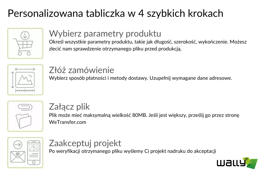 Zamawianie personalizowanych tabliczek i tablic informacyjnych jest bardzo czytelny i obejmuje tylko 4 szybkie kroki.